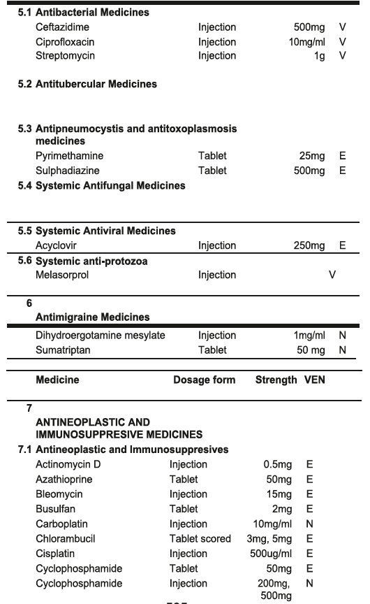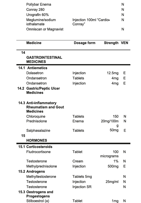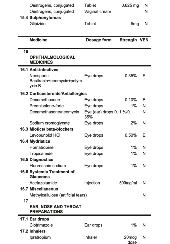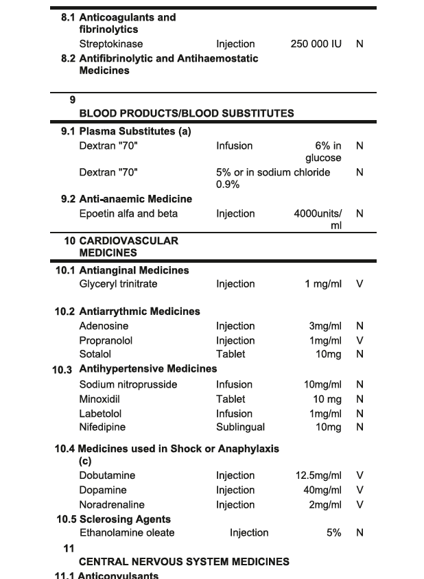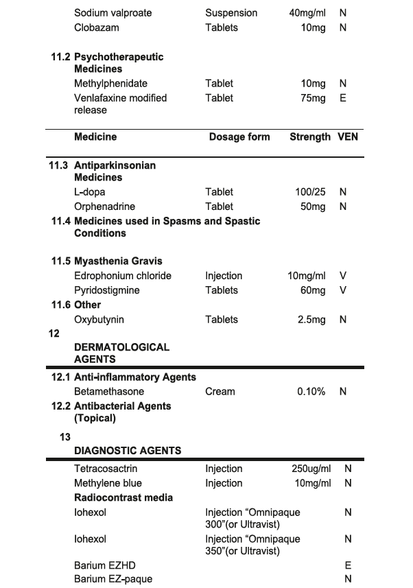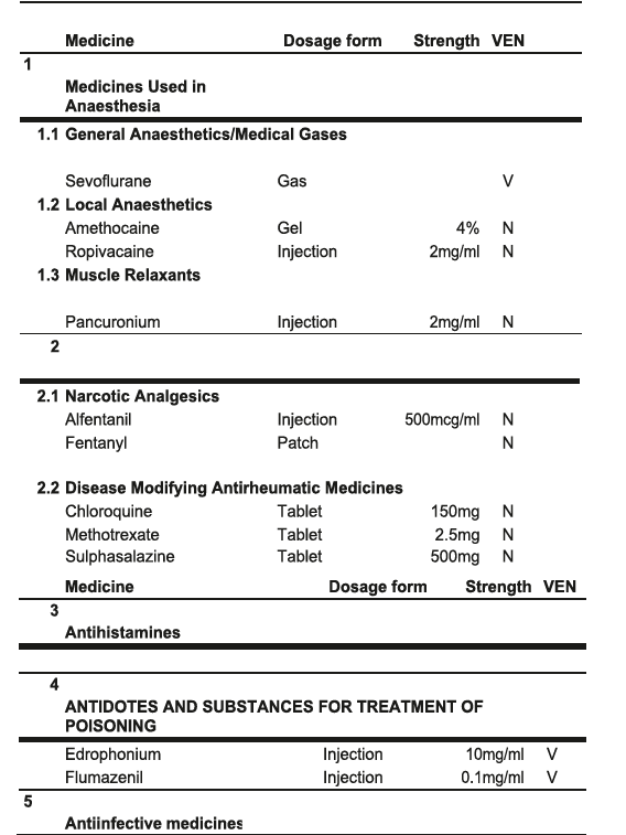 Categorisation of Medicines on the 8th Essential List for Zimbabwe