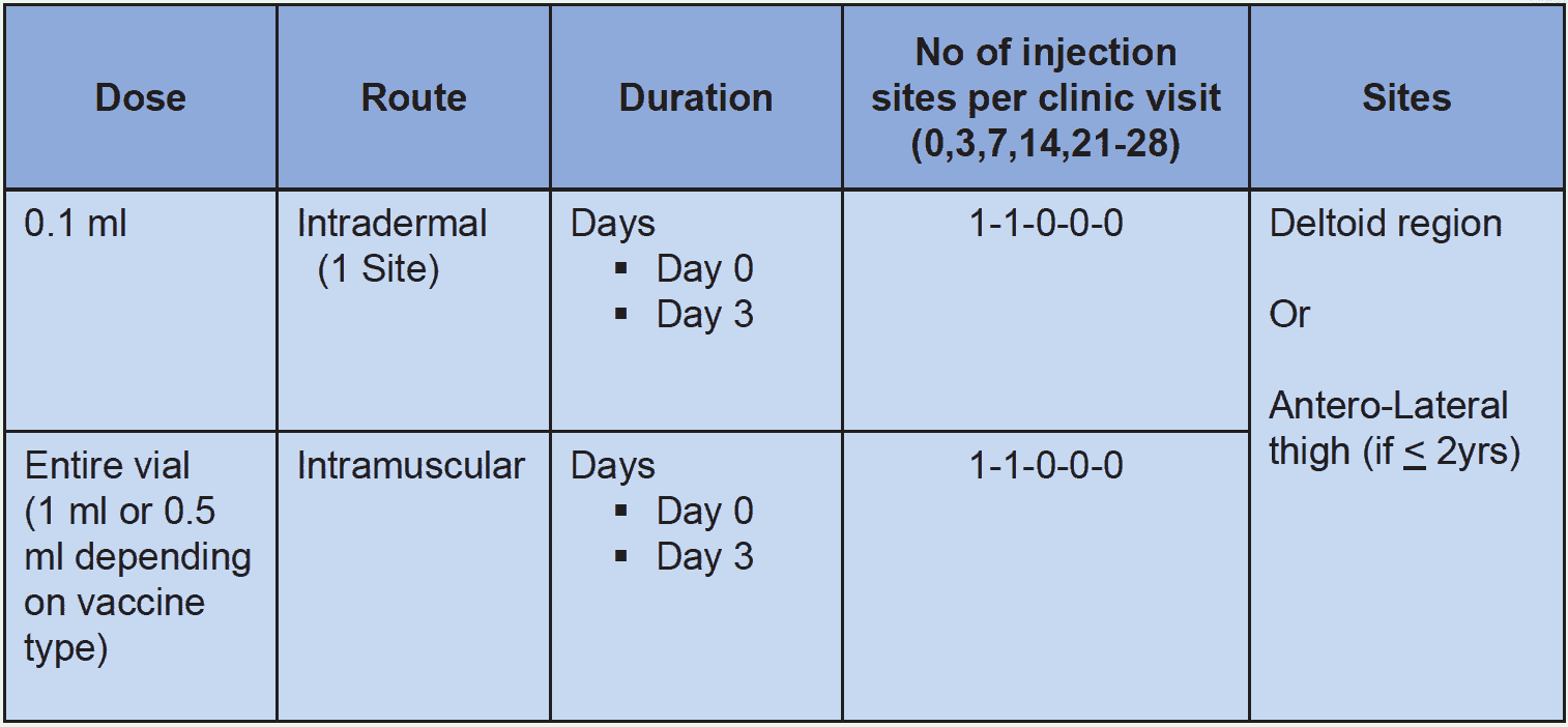 Table 6: WHO recommended Re-Exposure: (Rabies PEP of previously vaccinated persons).1