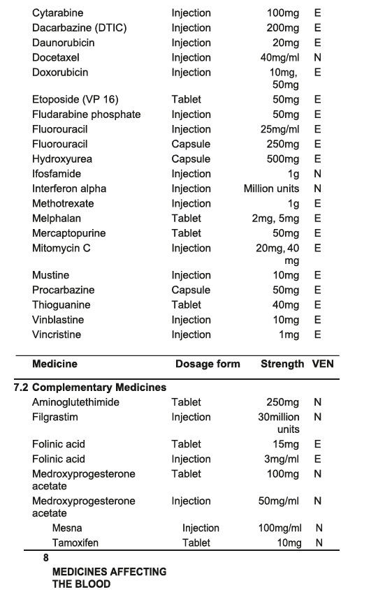 Categorisation of Medicines on the 8th Essential List for Zimbabwe